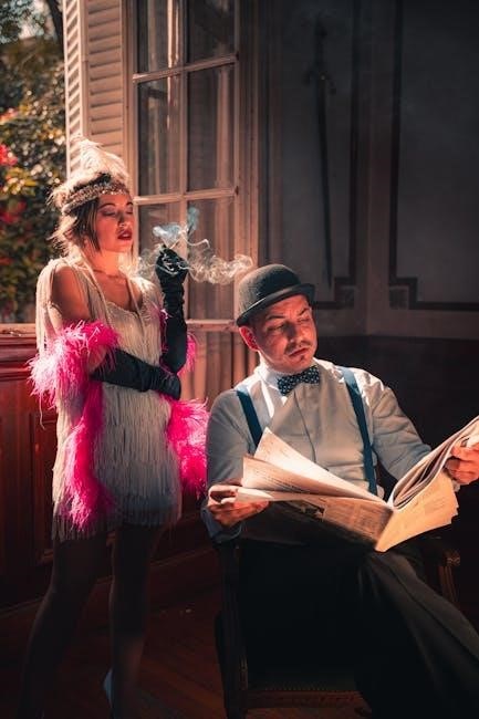 His wealth, shrouded in rumor, fuels his extravagant lifestyle and desperate attempts to recapture the past․ The story delves into themes of love, class, and the elusive American Dream, ultimately revealing the tragic consequences of Gatsby’s idealized vision and the moral decay hidden beneath the glittering surface of the Roaring Twenties․