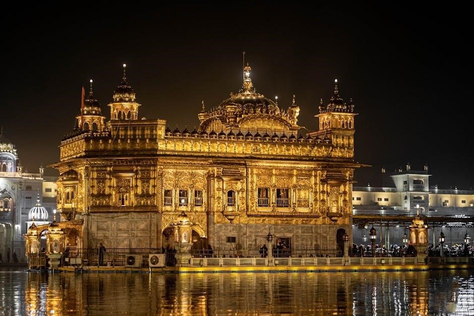 The composition follows a unique rhythmic pattern, enhancing its meditative quality. Analyzing the structure with resources like a Japji Sahib Vyakhya PDF reveals a deliberate progression of thought, building upon previous concepts. The verses aren’t random; they’re interconnected, forming a cohesive spiritual discourse.